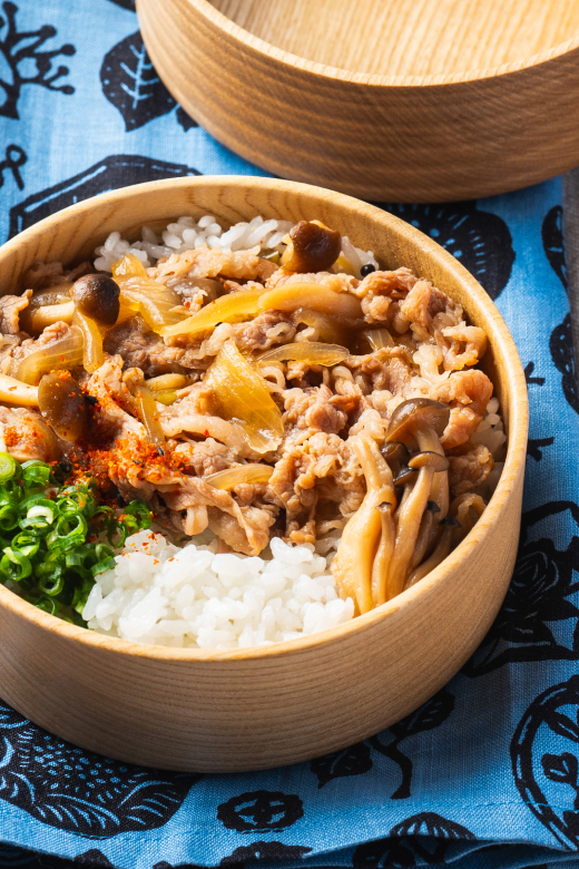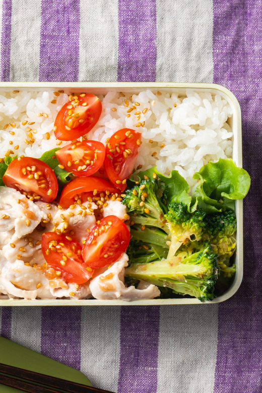 - 弁当箱に②と④を盛りつける。あればレタスを仕切りに敷き、お好みで粉山椒をふる。